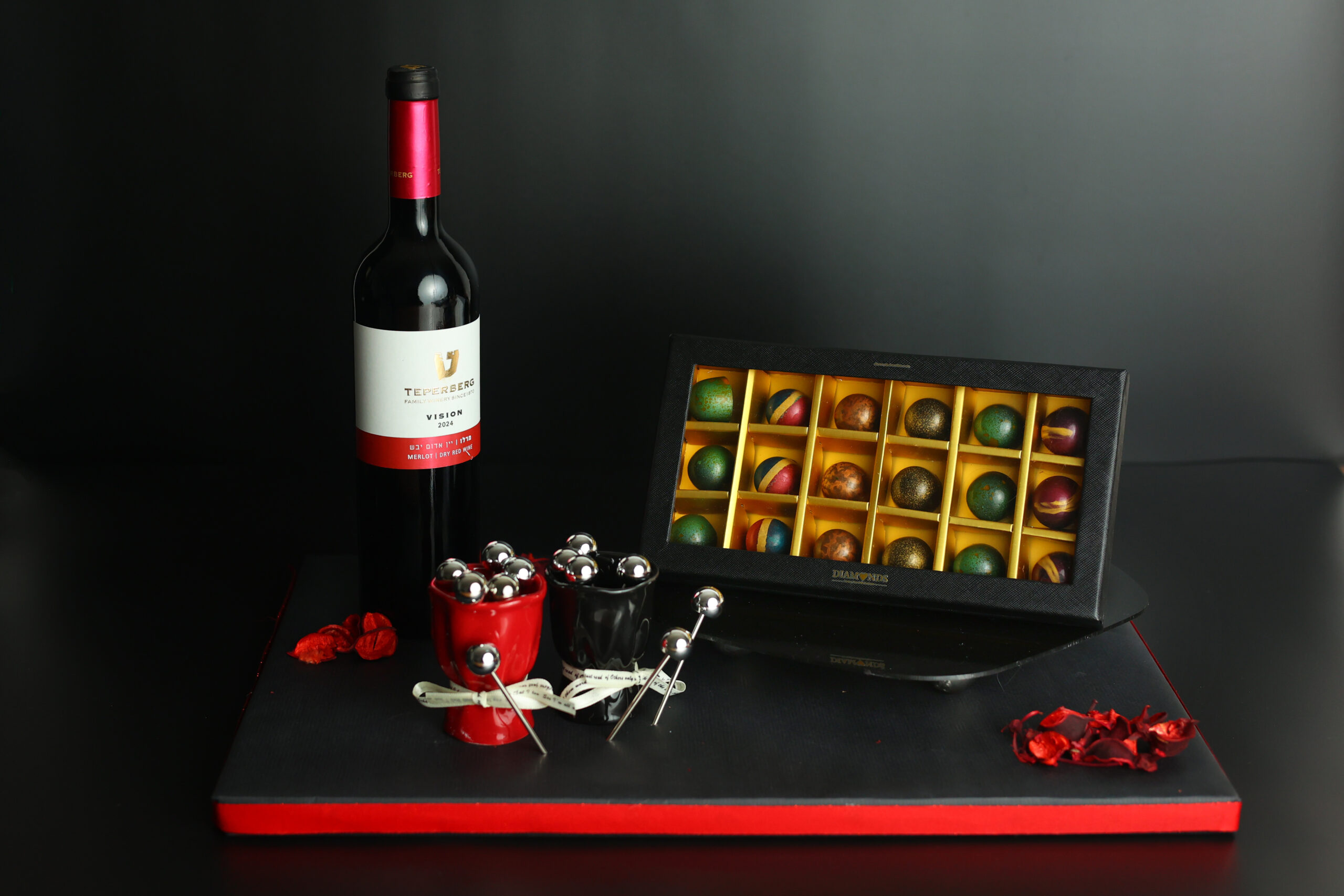 מעמד קרמי עם סט סכום לפירות – שחור ואדום